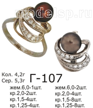 кольцо вес 4,2г вставки жемчуг 6,0-1шт круг 2,0-2шт круг 1,5-4шт круг 1,25-4шт