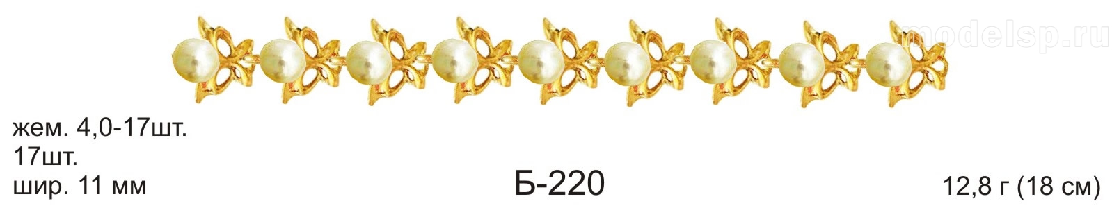 вес в золоте 12,8г. ширина 11,0мм. жемчуг 4,0 - 17шт.