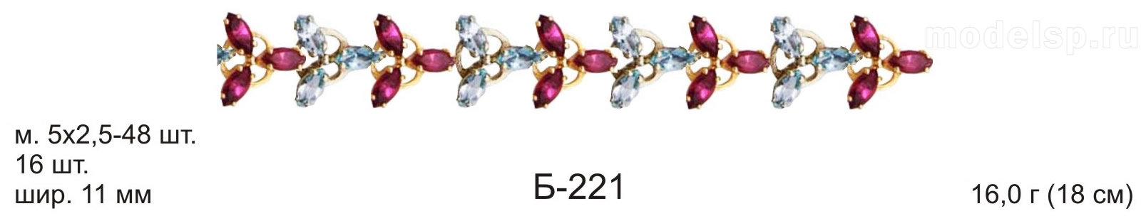 вес в золоте 16,0г. ширина 11,0мм. маркиз 5х2,5-48шт.
