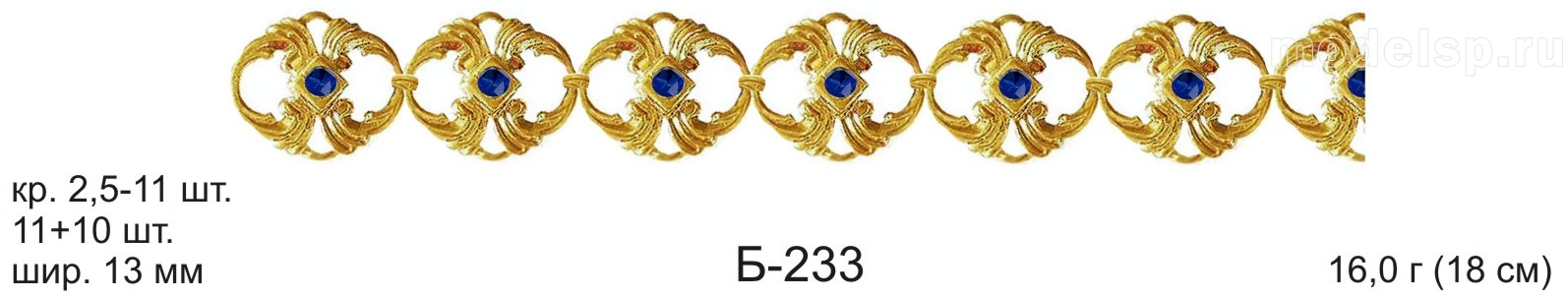 вес в золоте 16,0г. ширина 13,0мм. круг 2,5-11шт.