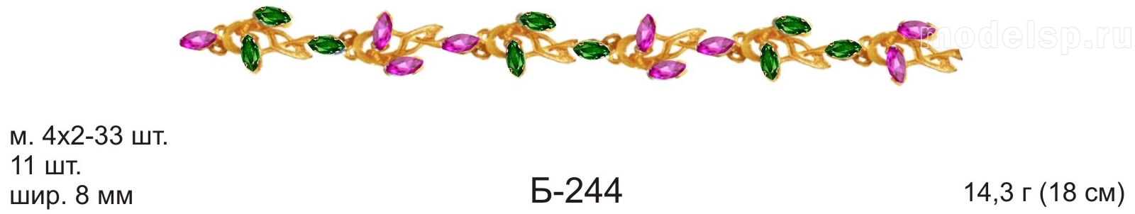 вес в золоте 14,3г. ширина 8,0мм. маркиз 4х2-33шт.