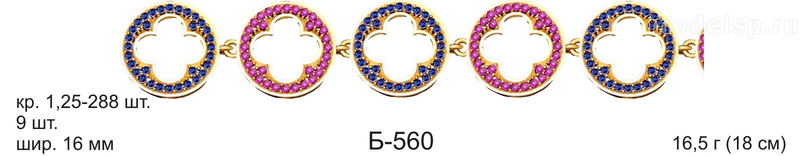 вес 16,5г 18см шир 16,0мм 9шт круг 1,25 - 288шт с камнем