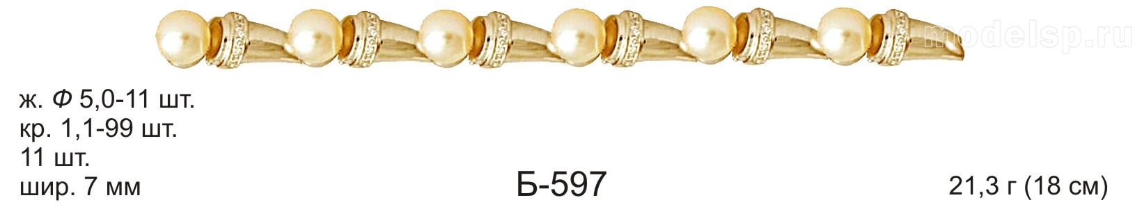 вес 21,3г 18см шир 7,0мм 11шт жемчуг 5,0 - 11шт круг 1,1 - 99шт с камнем и жемчугом