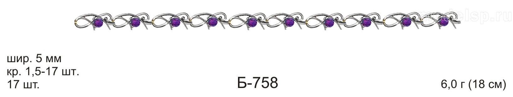 вес 6,0г 18см шир 5,0мм 17шт круг 1,5-17шт с камнем