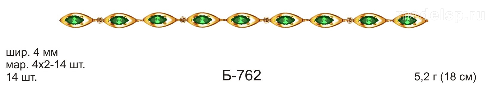 вес 5,2г 18см шир 4,0мм 14шт маркиза 4х2-14шт с камнем