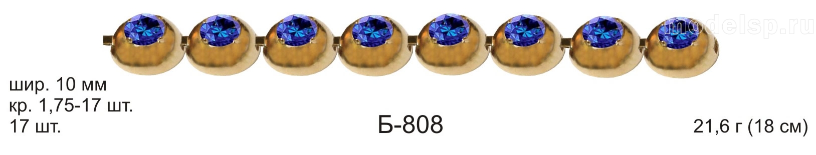 вес 21,6г 18см шир 10,0мм 17шт круг 1,75-17шт с камнем
