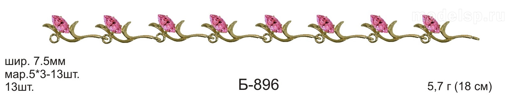 вес 5,7г 18см шир 7,5мм 13шт маркиза 5х3-13шт с камнем