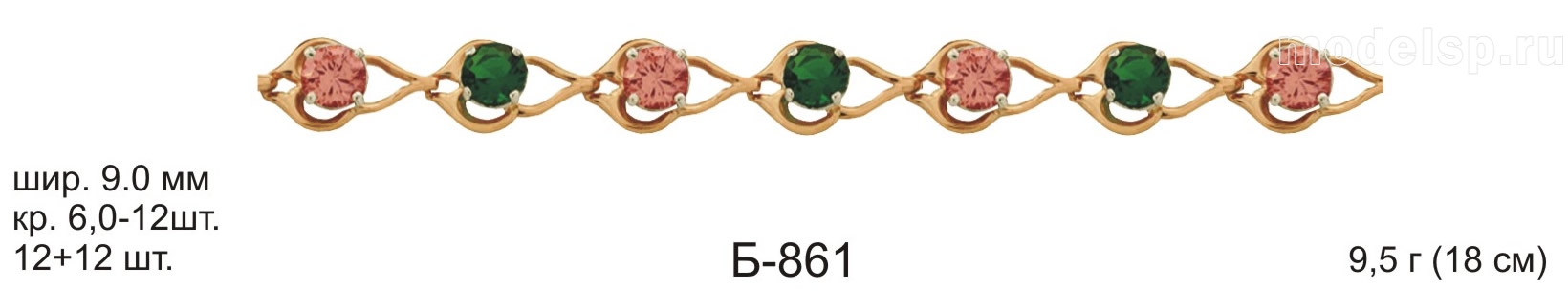 вес 9,5г, 18см шир 9,0мм, 12+12шт. круг 6,0-12шт. с камнем