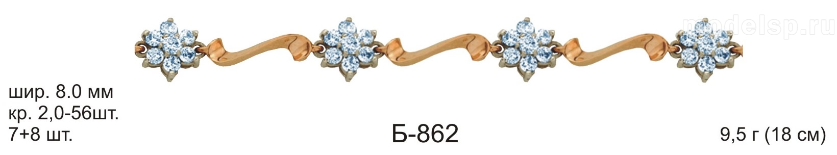 вес 9,5г 18см шир 8,0мм 7+8шт круг 2,0-56шт с камнем