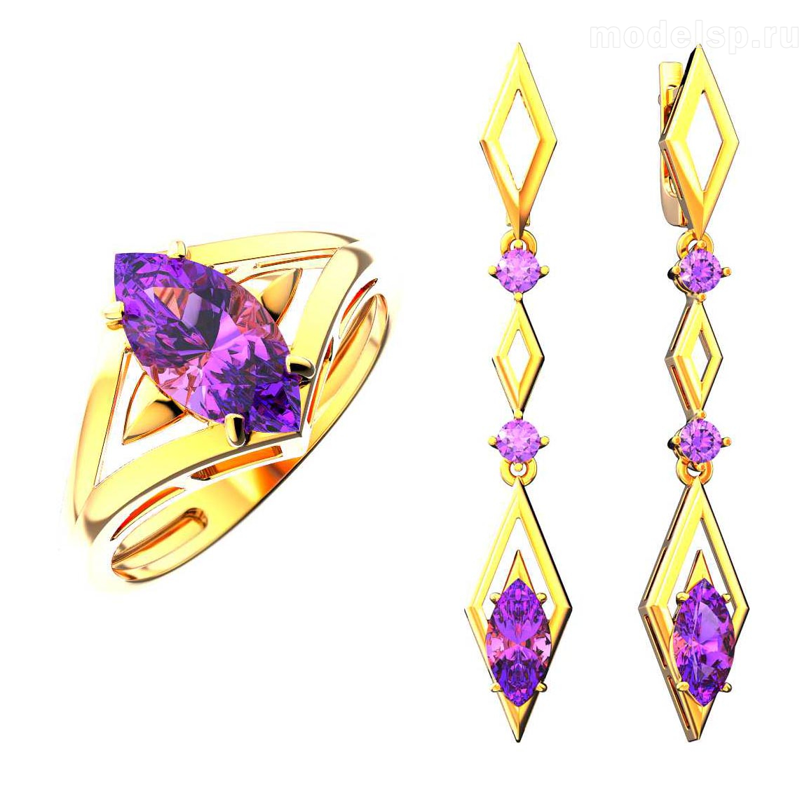 Кольцо вес 3,5 г. Маркиз 12х6 - 1 шт. Круг 4,0 - 2 шт. / Серьги вес 10,5 г. Маркиз 12х6 - 2 шт. Круг 4,0 - 4 шт.