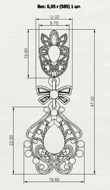 вес 13,8 г. размер 19,6х47 мм. круг 3,0-2шт. груша 6х4-2шт. груша 10х7-2шт.