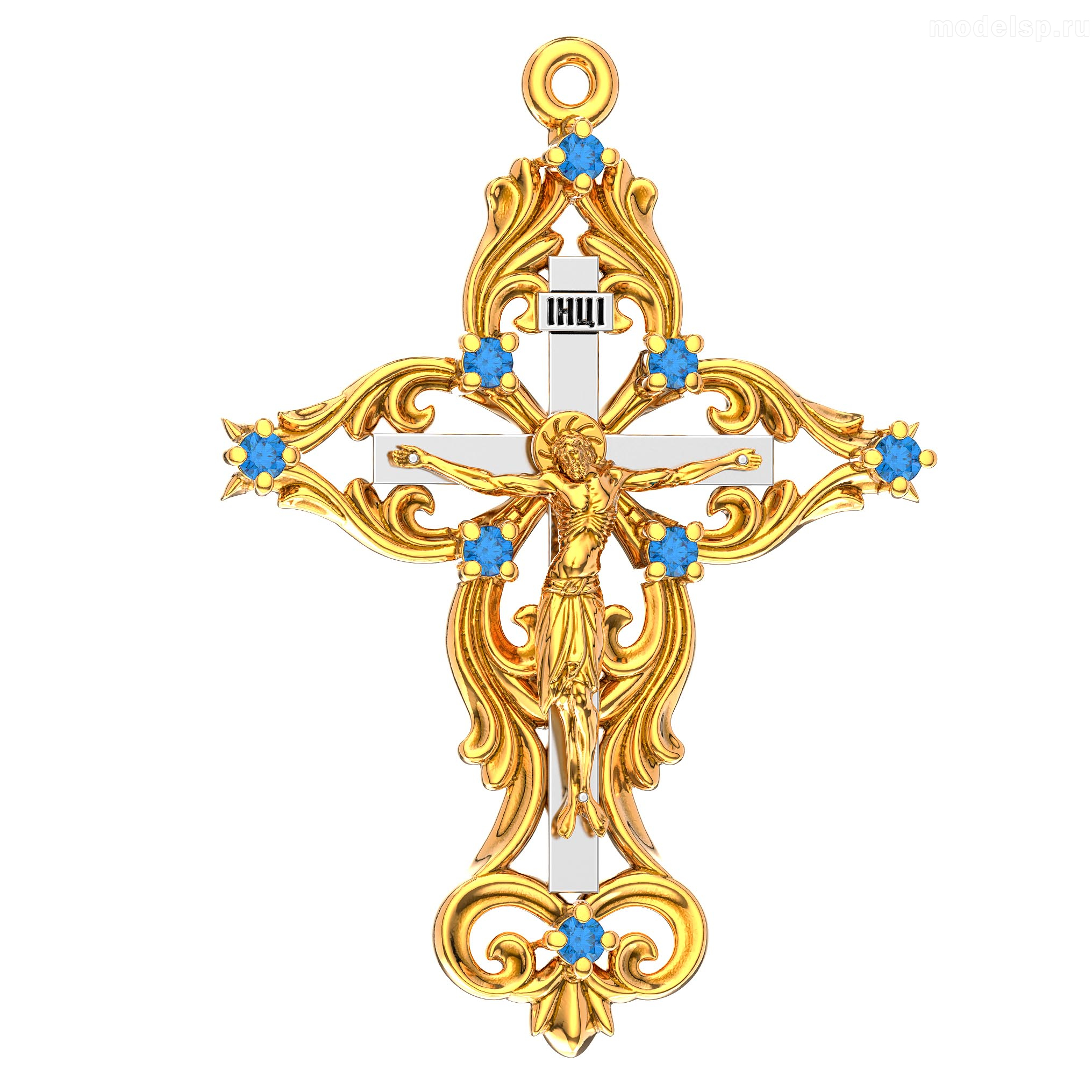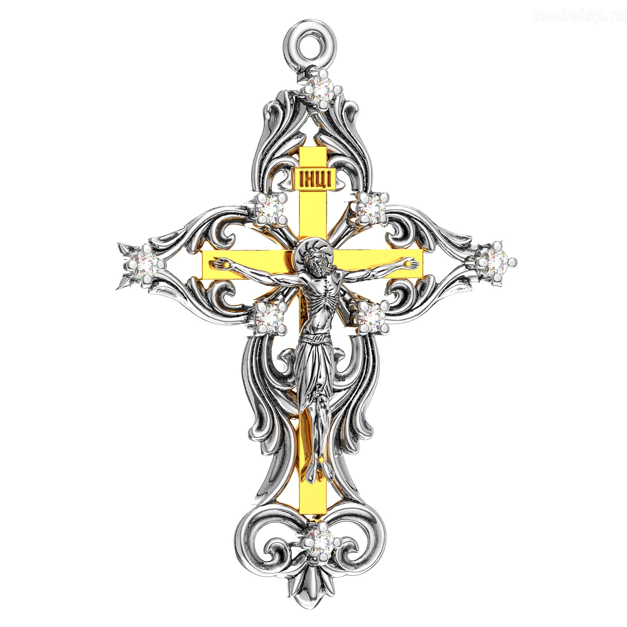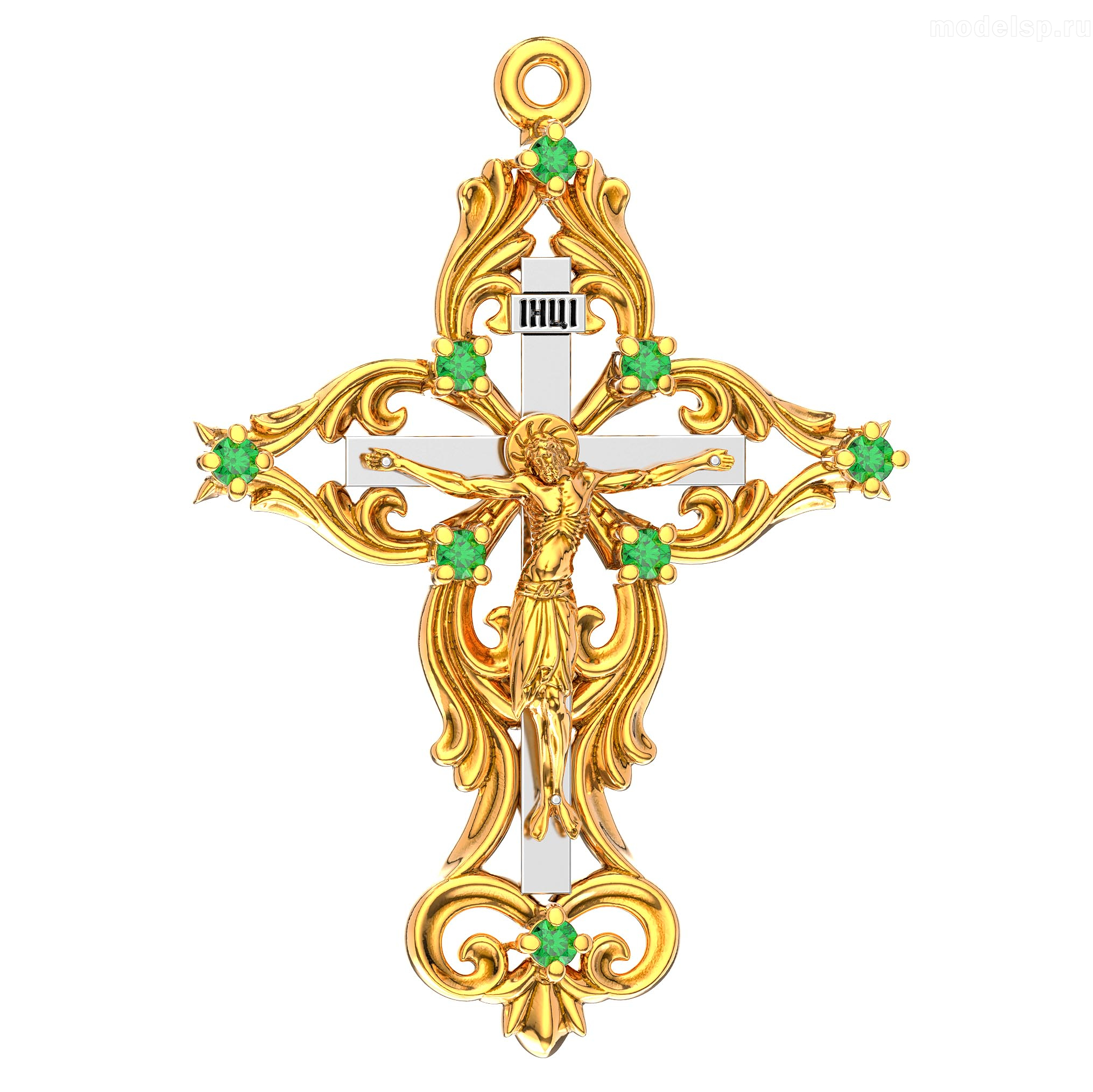тройной крест с камнями